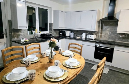 The whole group will enjoy a comfortable stay and easy access to everything, from this centrally located house. Free parking. Also 2 minutes walk to the bus stop for a bus ride to the train station or local areas. Catch a train and be in Central London within 20 minutes from the station. Families, contractors and any group will find this cosy accommodation welcoming, relaxing, comfortable and convenient. Enjoy staying indoors or going out, with shops, transportation and other necessities at your convenience.