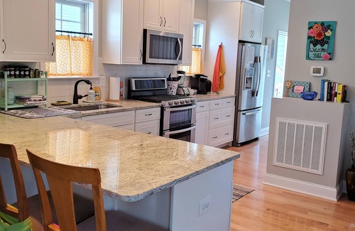 We hope you will enjoy our little slice of paradise whether you are boating, fishing, worshipping the sun, playing on the beach, or headed to our charming wineries and restaurants! Situated on a street smack-dab in the center of town, we are about 1.5 short, small-town blocks to the beach & boardwalk. & if it weren't for our lovely tree-lined street you'd even be able to see the beach from our windows. & not just the beach, but we are also just a short block from Monroe Bay. You can see the bay water shimmering from the upper windows on the east side of the house & you can walk to the nearby restaurants to enjoy fresh seafood, lively drinks, and a beautiful sunset! You are also within walking distance of many local restaurants and bars.