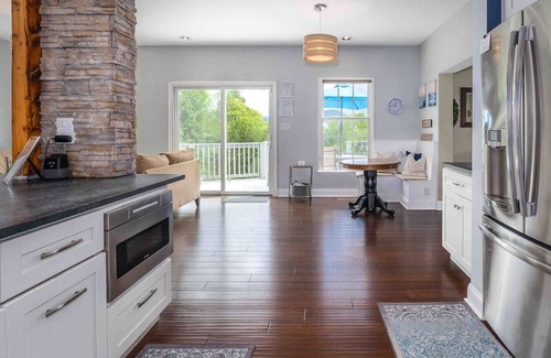 This well-appointed home has everything you need for a comfortable stay, including ample room for guests to spread out and relax. The kitchen is an open floor plan with a large dining area and table, as well as a living room nook. It comes fully stocked with pots, pans, utensils, crock pot, microwave, toaster, waffle maker, coffee maker, plates, silverware, bakeware, and wine glasses. Barware and bar supplies are also provided, along with coffee, tea, and sugar.