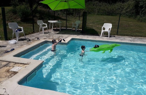 Yes, this Fresne-la-Mere house has a swimming pool. Check the Facility Overview section for details about the pool and other available facilities.