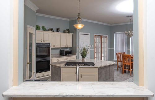 Large beautiful Bed and Breakfast-2 story home w/open floor plan-Large Den w/ fireplace, 5 bedroom with a bonus room with Bunk beds. Separate dining room & open kitchen. Master bedroom tucked away downstairs w/private bathroom with large vanity. 3 bedrooms upstairs. 5th bedroom has a top twin bed & bottom full bed. Bonus room w/twin bunk beds. You will enjoy our in ground pool, hot tub, large deck & spacious backyard and hammocks- upstairs has a common area w/large fish tank. Enjoy front and back porch w/outside grill. 11 minutes from downtown NOLA & French Quarter. No smoking in the property. Please smoke outside home in the backyard. The open kitchen floor plan is perfect for big families to enjoy. Gas stove with double oven. Also upstairs common area has a air hockey table for recreational use. Your family and friends will enjoy the open floor plan with plenty of space for privacy and or quiet mornings in the beautiful backyard.