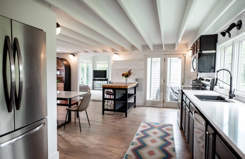 We have equipped the house with everything to make your stay convenient, comfortable and enjoyable. Including a designated work from home space with monitor, record player, Nespresso machine, outdoor firepit, stocked kitchen, modern appliances, indoor automatic fireplace, soaking tub, books, children's books, toys, puzzles and board games. Our wish for our guests is to fully relax and lose track of time while reading and drinking a warm drink.
