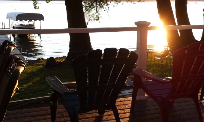 This beautiful vacation spot consists of 3 houses on the property with 110' of waterfront on Cayuga Lake and a total 4,708 sq. ft. of space. The homes just underwent a full renovation which includes updated kitchens, bathrooms, and furniture. The homes can sleep 24+ in beds m. There is a 75' dock with a sitting area at the end. The water is quite clear and not too deep so it stays relatively warm, great for swimming. There are lots of different sitting areas by the water including three decks, a screened in porch, many chairs, lounge chairs, adirondack chairs, and a swing are by the water with. There are multiple tables and plenty of grass space. There is a fire pit by the water great for evening fires on the lake. We provide a covered boat hoist and there are a number of places on the lake which offer motorized boat rentals.. Provided are two kayaks, a Jon boat with oars, and a paddle boat and the bass fishing right off the dock is some of the best in the fingerlakes. Also just 15 min. from Bass Pro Shops.