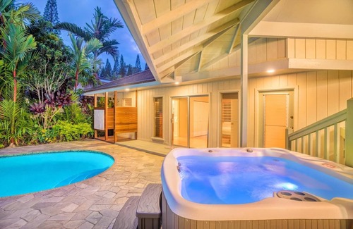 Located on the Makai Golf Course, this Princeville home is a large groups paradise. It features a pool, spa, ample indoor and outdoor space, two expansive decks, and a vast modern kitchen. With six bedrooms, including a bunk room, it’s well-suited for families with children. It’s located just minutes from shops, restaurants, walking trails to the ocean, and many of the north shore's most beautiful beaches.
