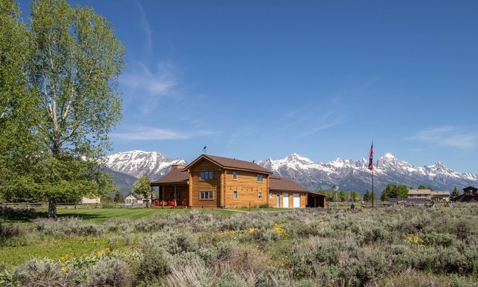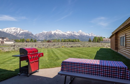 Situated on the edge of Grand Teton National Park, this spacious log home offers breathtaking views of the Teton Mountain Range and local wildlife. Whether you’re enjoying all that summer has to offer, or looking for the best snow in the West, this is the perfect home base for your Jackson Hole vacation. Perfectly appointed with Western charm, this unforgettable property celebrates it's mountain setting. Vaulted ceilings allow the home to fill with natural light, and showcase the stunning vista. Relax on the patio to take in the view from the yard. An excellent option for couples or families.