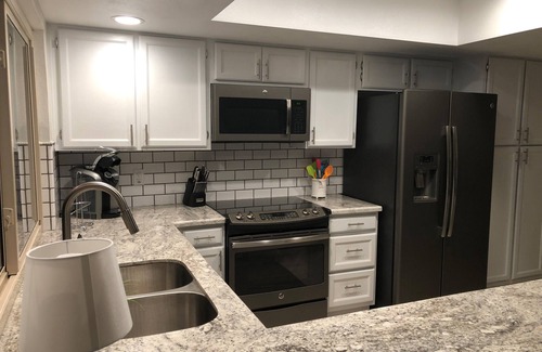 Cook in the fully equipped Kitchen with all new appliances and comforts of home or on the outside grill. You can sit and casually enjoy your meals at the expanded counter, or have a dinner party for 8 comfortably at the dining room table.