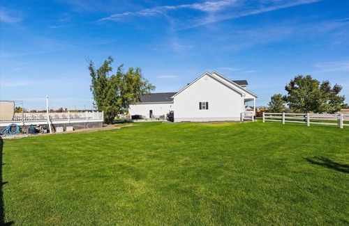Backyard has a 20' x 40' Heated Swimming Pool and lots of space for yard games and relaxing.