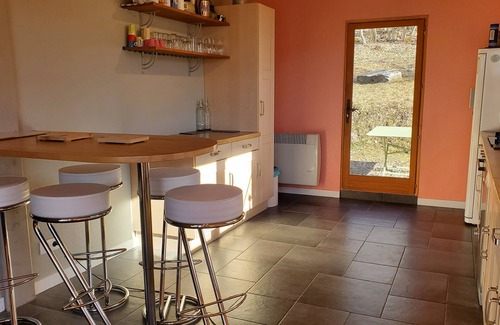 Like a refuge, for lovers of nature and simplicity! It can accommodate 12 people, or two families in 3 double rooms (160 beds, one of which is composed of twin beds that can be separated) and 1 dormitory of 6 beds (90 beds). A bathroom on each floor. Very spacious and luminous living space with lounge, dining room opening onto a large fully equipped kitchen.