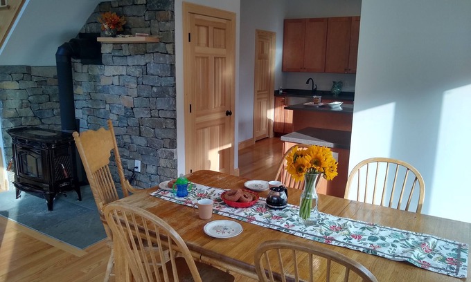 Spend a slow summer day walking the trails in the private forest, playing in the lake, and sipping ice tea on the deck. Or snowshoe for miles on the nearby trails and return to a warm fire and cocoa.