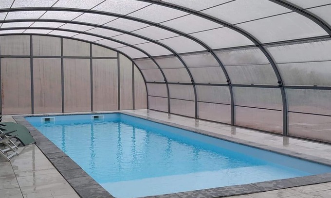 Large living room of 100m² with large bay windows opening onto the terrace, central island, wood stove (which also acts as a wood oven), lounge area, 5 bedrooms, 3 shower rooms, 3 toilets. Underfloor heating by aerothermal energy. The house has been renovated with great care with the aim of comfort so that you spend unforgettable moments there. We can mention the heated floors, sanitary equipment, king-size beds, beds made upon your arrival, and even the thermomix for cooking enthusiasts. The largest part of the cottage is located on one level, you also have on the floor below a large games room of 50 m², a bedroom for 4 people, a shower room and a toilet, allowing young and old to each have their own living spaces. Private land of approximately 1500 m². You'll love this old farmhouse, completely renovated in 2023, which can accommodate 14 people. It features a 10x5m indoor swimming pool, heated year-round. A house that's a veritable balcony offering superb views, which you'll enjoy from the living room as well as from the large 80m² terrace. Le Clos Saint Jean is a house that deserves to be explored. To get there, you'll have to drive slowly along a 700-meter track, but once you're there, the place is magical! Nathalie and Sébastien are farmers; they have goats, sheep, pigs, and cows... the owners will be happy to show you around their farm! They make delicious cheeses and farmhouse charcuterie. You can also observe farm animals in the meadows below the cottage...