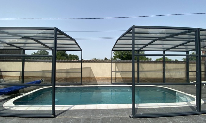 Character house completely renovated. 500 m² of land with indoor heated swimming pool from March to November. 1st building, ground floor: 1 ch. (1 bed 160 x 200 cm, 1 bed 90 x 200 cm). 1st floor: kitchen (microwave, freezer), lounge (tv), living room. 1 ch. (1 bed 160 x 200 cm). Toilet. Bathroom (bath and shower). 2nd floor: 1 bedroom. (1 bed 160 x 200 cm), 1 bed. family (2 beds 90 x 200 cm. 1 bed 160 x 200 cm), bathroom with wc). Games room (billiards, table football, darts). 2nd building, ground floor: kitchen area (fridge), WC, shower room, floor: 1 bedroom. on the mezzanine (2 160 x 200 cm beds). Beds made (sheets provided). Serenity offer: coffee filter, dishwashing product, sponge, toilet paper and 10 tea towels € 25. Towel rental € 4 per person. Oil central heating. Cleaning option included if the gîte is made clean otherwise 150 € deduction on the deposit.