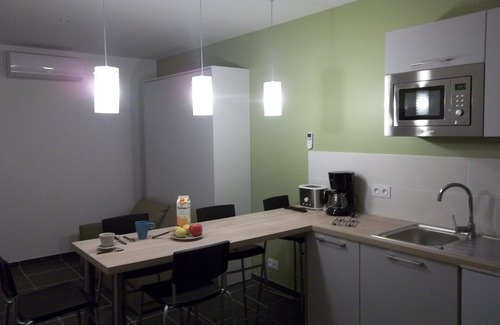 Large 17m2 terrace facing "South East", equipped with an Automatic Bio-Climate pergola with remote control, with table, chairs and deckchairs allowing meals to be taken in the best conditions, Thermodynamic Balloon, High quality sleeping accommodation with 20cm Latex mattress and 83Kgs / m2), Integrated kitchen, induction hob, extractor hood, dishwasher, etc ...