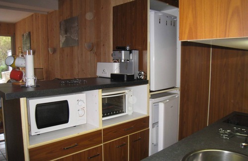 separate fridge and freezer, mini oven, microwave, ceramic hob, coffee machine, coffee maker, kettle, blender, toaster