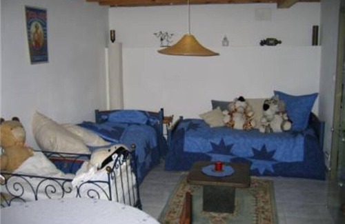 In the owner's house on the groundfloor one studio (50m2) with 2 beds (90cm) plus a sofa bed. Kitchenette with cooking ring, fridge, microwave, toaster, watercooker etc. Bathroom with toilet, washbasin, big corner-bath-tub and hairdryer. Dining / Sittingroom-corner with TV and DVD, electrical heater.