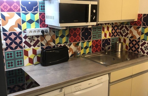 * 1 kitchen equipped with a dishwasher, electric hob, a microwave, a coffee maker, a toaster,