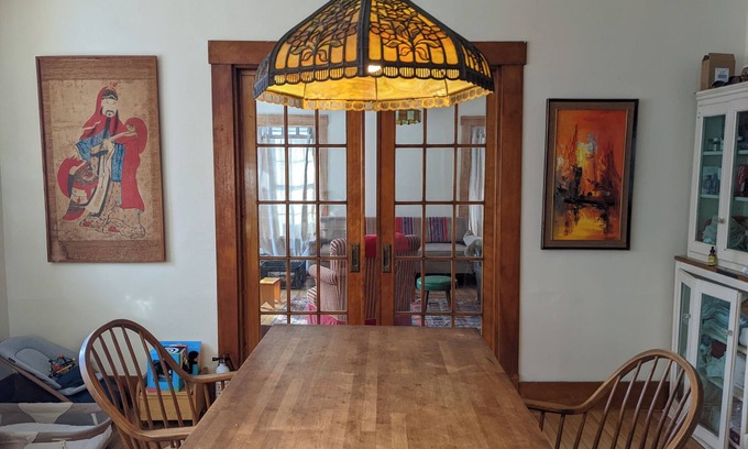 Large Sunny Downtown Artisanal Vermont Home w/Porch, Private Chef, and Fire Pit is located in Brattleboro. Large Sunny Downtown Artisanal Vermont Home w/Porch, Private Chef, and Fire Pit provides accommodation, featuring Air Conditioner, Balcony/Terrace, Sports/Activities, among other amenities. This House features Air Conditioner, Balcony/Terrace, Sports/Activities, to make your stay a comfortable one.