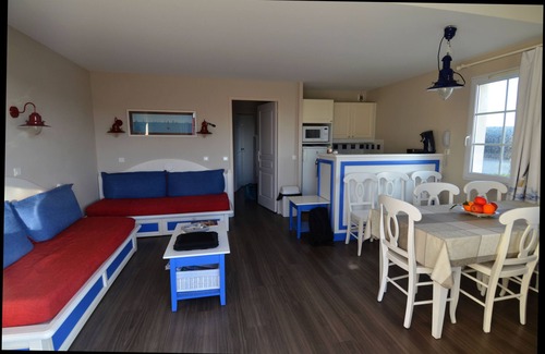 Rent beautiful rental T4 SEASIDE AND SEA VIEW classified 3 stars by the tourist office BRITTANY, from 2 to 8 beds in luxury residence PIERRE ET VACANCES on the SEASIDE (CAP-MARINE - Men Meur street)