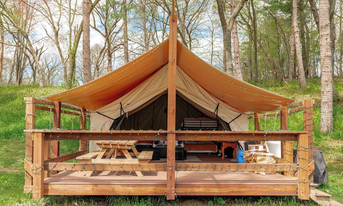 Come glamp at Big Rock Creek! This tent will come with lake views and easy access to our network of trails and 980 acres of nature! Whatever outdoor activity youre into, we will have you covered. Kayaks, canoes, paddleboards, swim raft and paddle boats on the lake are free to use on a first come first serve basis! We have bikes, Electric Ranger UTV, Pontoon on the St. Croix River and more to rent when on site!