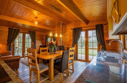 Large three bedroom log cabin with private hot tub and decking over looking the beautiful river Brue. The lodge is fully equipped for self catered holidays, and has three great sized bedrooms, one large main bathroom with toilet and one wet room with toilet. You can sit back and relax with the cosy log burner or spend the evening in the private hot tub. The lodge is located in the grounds of Wall Eden Farm, an ex dairy farm in the heart of Somerset but only minutes from the coast.