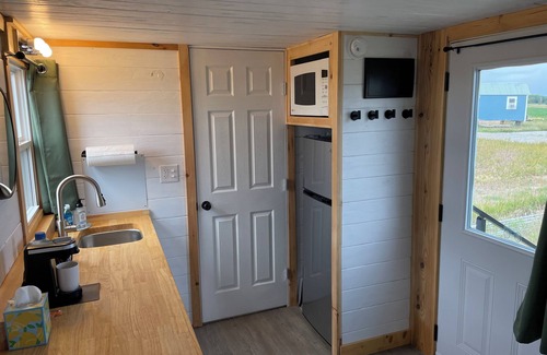 Enjoy a rare and memorable experience in this spacious Tiny House and immerse yourself in the unique charm of rural Kansas, picturesque farmland & open skies - perfect for stargazing. This tiny space features self checkin, a Full bunk bed, loft with a king-sized bed, Wi-Fi & kitchenette with medium sized fridge, microwave/convection, induction stovetop & coffee maker. Basic dishes & cooking supplies provided. Full bathroom comes stocked with towels, shampoo, conditioner & body wash.