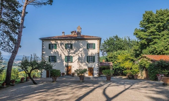 Nestled between Umbria and Tuscany, Villa Monterchi II is a luxurious property near artistic hubs such as Cortona and Arezzo. The villa features an outdoor Jacuzzi and a large private pool. The bedrooms and lounge areas of Villa Monterchi II were remodelled by well-known local artist Luigi Puletti, who was a forerunner of the Liberty style. The 25 hectares of land surrounding the villa, which has a private pool, are home to century-old oaks, cypresses, and pine trees. These trees have been planted to create a natural park, where guests can enjoy the local flora and fauna.