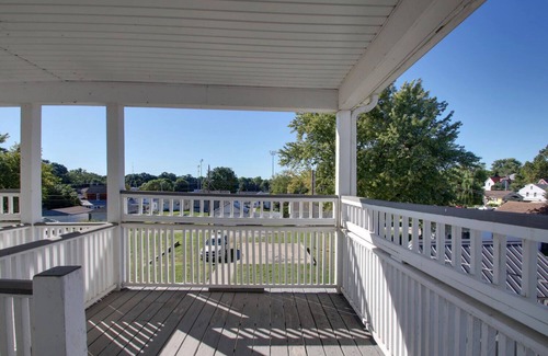 Updated and spacious 1 bed 1 bath upper apartment with large rooms and covered deck. Eat-in kitchen. Two separate entrances. Fiber Wi-Fi. Central heat and A/C. No washer/dryer hookups but there are two laundry mats within 6 blocks of the property. No dishwasher. Off street parking. No smoking. Owner is an IL and MO licensed real estate agent.