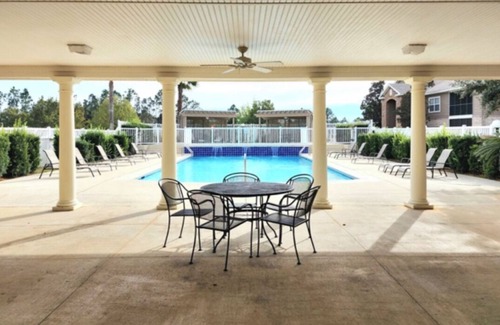 WORK TRAVELERS WELCOME!! If you are looking for a centrally located Condo, this is it. This property is newest to the rental market and is extremely well-kept, fully stocked with kitchen equipment and extras - and plenty of room for the entire family. Central in the area, Foley and Gulf Shores Sports complexes and any of of the smaller fields around this area. SAFE and QUIET location. Features a greatroom/living/dining/kitchen combo that opens to an outdoor area. This condo is much larger than what you would find comparably beachfront!! All new mattresses, large television in greatroom, everything for comfort. YMCA is directly across the street for a workout. Large on-site resort style pool steps away and walking distance to grocery. Publix and Walmart and Large Outlet Mall are directly across 59 Hwy while this complex is nestled in an upscale neighborhood just behind many many many choices for restaurant/retail. Forget the beach traffic and prices! Come enjoy our place. Since we are new to this platform, please ask for our reviews. We are long-time “innkeepers” and love what we do. We would love to share our reviews from other platforms! Our very large pool includes lounge chairs, patio tables, and dressing area/bathrooms, a pergola area for eating, and a soothing waterfall feature. It is steps away from this Condo but fully gated and locked. Baby pool is separately secured within.