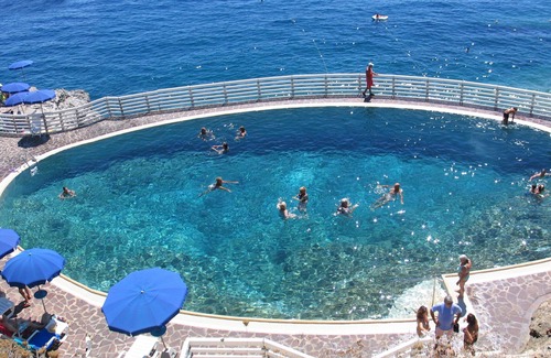 Capo d'Arco is an exclusive private enclave of 40 hectares completely enclosed 12 km from Porto Ferraio and 3 km from Porto Azzurro. The area is surrounded by a wonderful pine forest and overlooks the sea. From the cliffs, two splendid pools with sea water, one for the smaller and one bigger, have been obtained, whose partially rock bottom backs up the sea floor and creates suggestive light games. On the poolside fronts, from which you can access directly to the sea, and on the small beach called "the crocodile", you can rent sun loungers, sun loungers and umbrellas. Inside the area are also two freshwater pools, one for children and one for adults. The hotel also offers two bars, a pizzeria restaurant, and a sea food service, a small souvenir shop, ping pong fields, two tennis courts and a beach volleyball court. Internet with WiFi available in the dining areas and the sweet pools. The 24-hour guard service also guarantees total safety, no cars in the shortest distance from home to the sea or the beach and a limited number of people even in August.