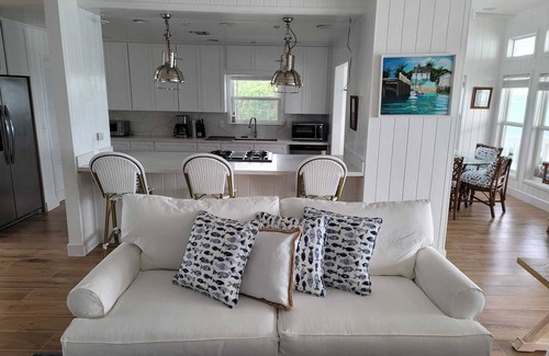 House has a very expansive private dock and another slip in the marina that is included with the property, labeled Makaira. This house can accommodate at-least two boats. 40 foot center console in picture on the front dock platform. 3 new air condition units, generator, wifi, Kayaks, and loaded kitchen with everything you need. House has been recently repainted on exterior and interior. New furniture replaced throughout entire home. Complete renovation 2024.