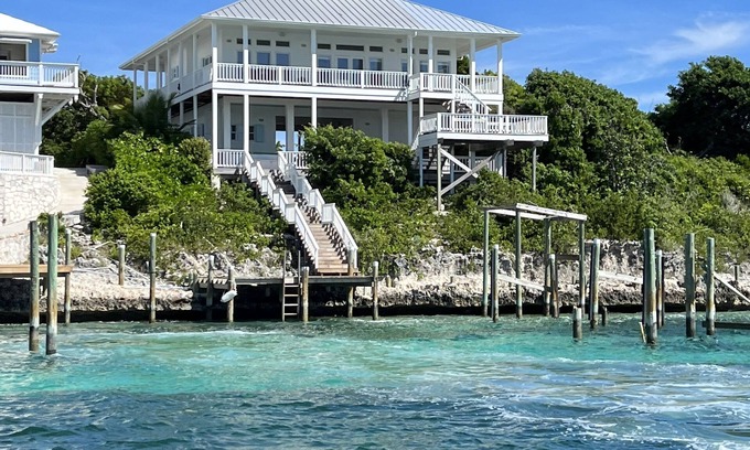 Large waterfront Home on Lubbers with Private Boat Dock | House in Hope Town