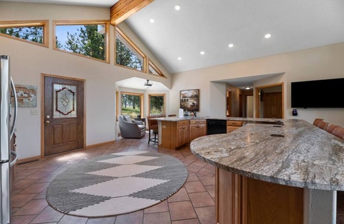 At Custer Lodge, the amenities are designed to enhance your wedding getaway. Enjoy luxurious sleeping arrangements with seven thoughtfully appointed bedrooms, alongside four bathrooms for convenience. The main floor features a spacious living area with a large granite counter and breakfast nook, providing a beautiful backdrop for post-ceremony brunches or casual dinners. The highlight is the bonus game building—a 60x30-foot detached space filled with foosball, pool, and shuffleboard tables, perfect for entertaining guests during downtime. Take advantage of the attached double-car garage, relax in the hot tub, or gather around the fire pit under the stars to toast to your new beginning.