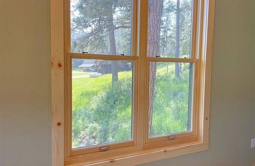Enjoy visiting wildlife and the neighboring horses from the front deck and take in the beauty of the trees surrounding this neighborhood. The Lariat Bunkhouse is completely furnished, including towels and linens. The brand new kitchen includes a refrigerator, stove top, toaster oven, microwave, coffee maker, dishwasher, dishes, and cooking utensils. Have a vehicle you'd like to protect? This home has a single car garage for guests use and can sleep 4 comfortably. Please NO PETS.