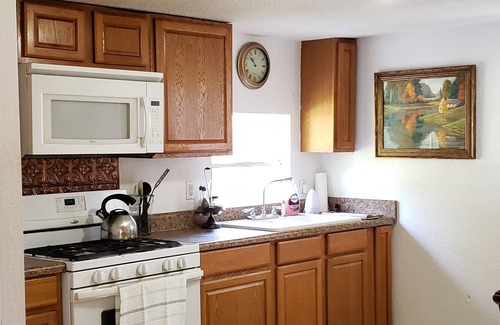 Completely renovated! Comfortably sleeps 4-6 people. Spacious kitchen. Hammock. Grill. Across from Thunderbird Airpark. Bring your family and friends along with your telescope, golf cart, atv, boat or airplane to our mobile home guest house.