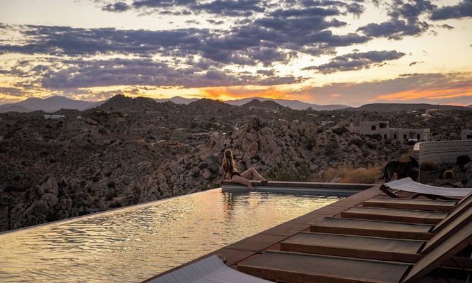 Welcome to Las Rocas by The Cohost Company—an epic hillside estate made for unforgettable group getaways. Lounge by the infinity-edge pool, take a dip in the jacuzzi, or gather around the firepit with sweeping desert views. Inside, wood-beamed ceilings, massive windows, and plenty of lounge areas to create the perfect hangout. With arcade games, pool table, ping pong and more, this stay is built for memory-making.