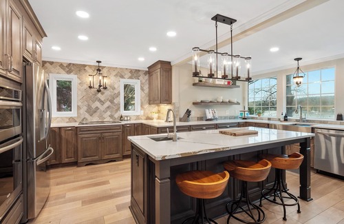 The place started as a 1 room log cabin that was added to many times over the years. In 2021 we stripped the place to its bones and updated everything while keeping what was cool about the place. We think the result is a cabin with all the character you could want and all the modern features of a true luxury vacation venue. You should take the time to walk the miracle mile. A street that is lined with trees that canopy the road and views of the lake that are just beautiful. You can spend evenings by the rock fire pit with a waterfall feature or on the swing porch that is lake front. You may want to relax in the copper lined bubble infused soaking tub or the incredible steam shower. This home oozes luxury and romance! We have. very nice luxury Pontoon available at your dock at discounted rate for guests.