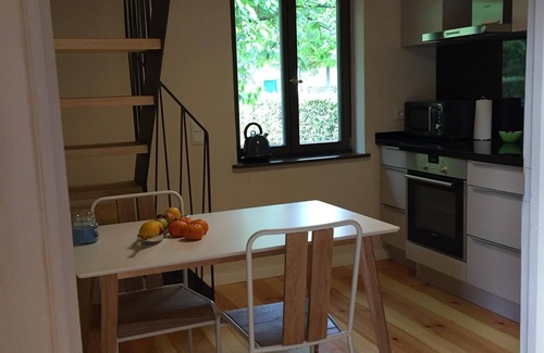 The holiday home with its own entrance is located on 2 floors in the former stable of the in 2017/2018 redeveloped individual monument with private garden and wonderful views of the garden. The residential street is a dead end and traffic-calmed. You live centrally and at the same time with the view into the green in the World Heritage - in the middle of Potsdam's historic city center. The Belvedere on the Pfingstberg with castle and park are just a stone's throw away. The city center can easily be reached on foot in 10 minutes or in 5 minutes by bike. Only a few meters away is the "Russian tearoom", where you can have breakfast or enjoy Russian specialties.