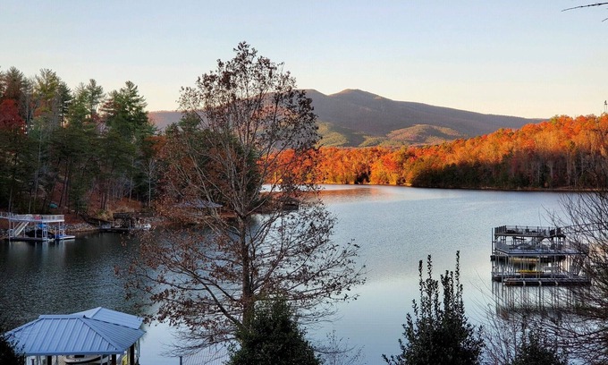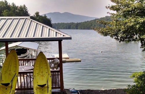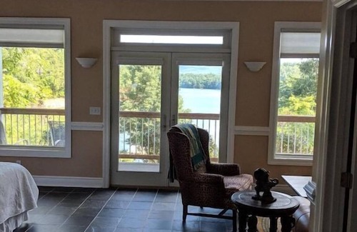 Last minute special going on now for open July and August dates. This gorgeous custom built home is perfect for your family vacation, office retreat, or quiet mountain getaway. Nestled in the Blue Ridge Mountains, this 5500 square foot home boasts two master suites, three additional bedrooms and four bathrooms. On the main level, you will experience breathtaking mountain and lake views from the living room, kitchen, dining room and master suite. Enjoy your morning coffee on the large covered deck, or watch an amazing sunset after an exciting day on the lake.