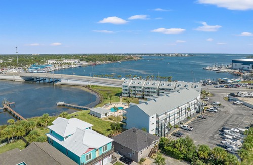 LOCATION! LAST MINUTE DEALS ALL 5* REVIEWS Super nice & clean 1/1 with bunks in the hallway. This is a family friendly small complex right on the water. It is walkable to many restaurants, such as the famous Captain Andersons. Walk to Pontoon, jet ski rentals and dolphin tourist attractions. It's also near St. Andrews State Park and 1/2 mile to the sugar sand beaches. Enjoy a nice breeze off of the water on your large balcony with a gas grill. This unit is completely remodeled with coastal decor and a fully stocked kitchen. Linens are provided and 2 large flat screens with basic cable and ready to stream your favorites. The pool is just steps outside. 2nd story view, only accessed by stairs. Must be 25 to book.