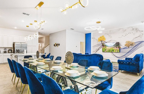 Welcome to the Last Minute Disney Getaway!, a luxurious 12-bedroom villa that serves as an idyllic wedding accommodation for couples seeking a romantic yet practical venue. With the capacity to host up to 27 guests, this spacious and open-plan property features beautifully themed bedrooms, providing a unique atmosphere that enhances your special day. Imagine exchanging vows in front of a stunning backdrop, followed by celebrations alongside family and friends in an enchanting setting designed for unforgettable moments.
