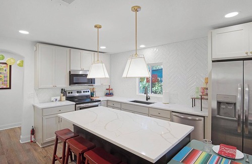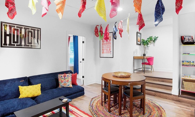 LaTexienda is your next memory-making chic Tex-Mex escape in historic College Station. Round up the whole family or your closest crew and kick back in this newly renovated, Tex-Mex styled casa! Just a stone’s throw from A&M, with easy Uber/Lyft access and far from the mid-town hustle, LaTexienda checks all the boxes. With comfy beds, sparkling bathrooms, shiny new everything, thoughtful touches, a fire pit, and 75'' TVs, LaTexienda is ready to turn any occasion into a fiesta!