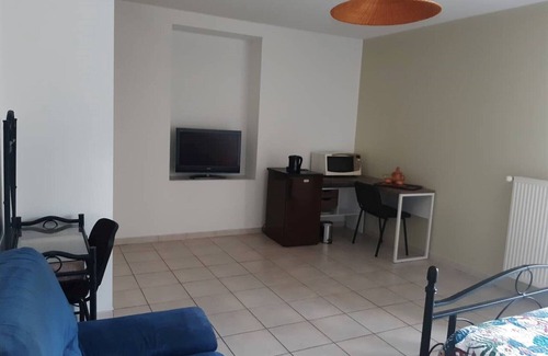 Housing ideally located between land and sea. 7min from the Lézignan-Corbieres motorway exit. Room that is part of our main accommodation in a quiet village with a grocery store. You will have at your disposal a room of 30m2 composed of a double bed, a cupboard with wardrobe, a desk but also a fridge, a microwave and a kettle. The bathroom and wc are separate. These spaces are common.