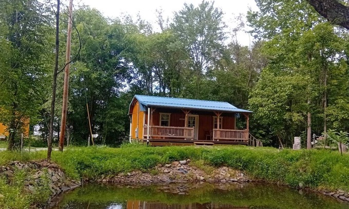 Escape to this lovely cabin in picturesque Athens. This adorable retreat features a cozy living room with 1 queen bed and 2 twin loft beds, perfect for a small group of guests. Relax with the whole family at this peaceful cabin overlooking a koi pond. Stay in a truly unique, small home style with a porch view of 30 acres of forest creeks, hills and wildlife. Explore the trails and experience nature conveniently near the lively culture and arts town of Athens, Ohio, and Ohio University.