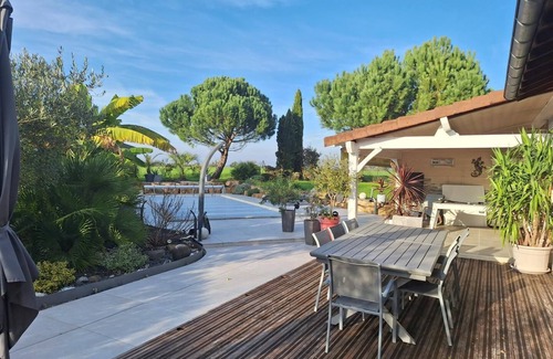 Sabrina & Jérôme welcome you to an authentic, traditional 19th-century Bresse farmhouse, carefully restored, nestled in the peace and quiet of a rural hamlet, 4 km from the village of Sornay (small shops & supermarket). Total tranquility, nestled on the edge of a vast plateau of fields, a stone's throw from wild forests, in the heart of the gentle Louhans countryside. Spacious, very comfortable gîte. Vast living room. Ultra-complete, high-quality equipment. Warm country character with contemporary accents enhanced by the rich traces of the original building (masterful multi-centenary beam, walls & old brick bread oven, stone fireplace mantels, beams, half-timbering, etc.). This 3,800m² enclosed property includes a beautiful heated swimming pool with shower (4x10m) carefully landscaped (flowers and vegetation) in a Mediterranean and tropical style, a pétanque court, a small private, fenced and secure fish pond with a pontoon (carp and tench fishing possible), a sheltered and exposed terrace (with an unusual outdoor billiards area), and a covered games area with a ping-pong table. Beautiful unobstructed views of the surrounding countryside. Composition: Single-story semi-detached house. Oil-fired central heating + heat pump. Wood pellet stove. Air conditioning. Wi-Fi (fiber). Living room-kitchen/lounge, 3 bedrooms (2 with 1 double bed 160x200cm + 2 single bunk beds 90x190cm / 1 double bed 140x190cm), including 1 with a private bathroom (bathtub + shower). multi-jets), extra "sleeping area" with TV (sleeping area with 2-person sofa bed 140x190cm), shower room (shower/WC), separate WC, laundry room (external annex). Enclosed grounds (3800m² with electric gate) + terrace + covered terrace (with billiards) + private fenced pond + heated swimming pool (4x10m / from May to September) + pétanque court + ping-pong table under cover + carport (2 spaces) + private parking. Electric car charging point (paid service). Mini-market 4 km. Supermarkets 8 km.