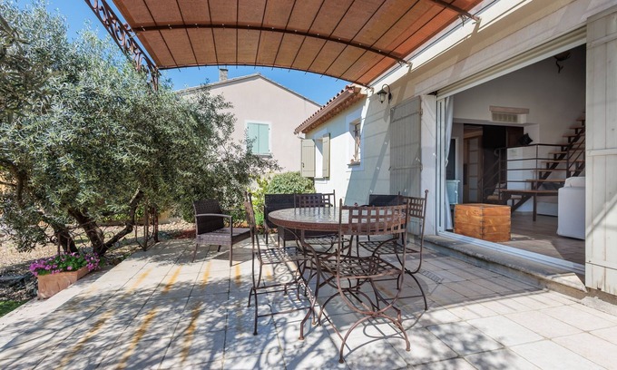 Cocoonr/Book&Pay offers this 92 m² air-conditioned house for rent in Cabrières-d'Avignon, which can accommodate up to 6 travelers. It comprises an attractive 50 m² living room, a fully-equipped kitchen, two bedrooms, two shower rooms and a 300 m² garden. Wifi (fiber optics), sheets and towels included, we're waiting for you!