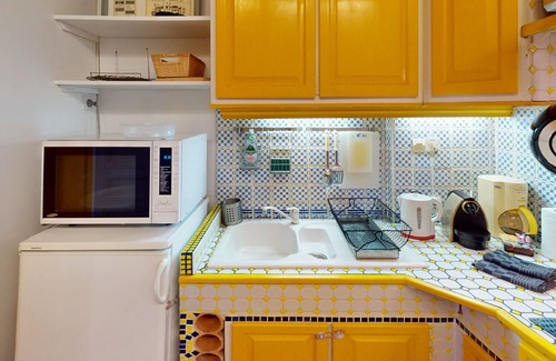 ✔ Fully equipped kitchen (Nespresso, kettle, toaster, cooktop, microwave) — charming vintage kitchen