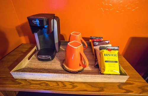 * Coffee machine, microwave, refrigerator, and hair dryer