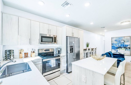 'Lavender' at Aviara Lake Worth is a modern 3 bed/2 bath 2-story townhome. Guests can expect a fully equipped home for all their needs; fully supplied kitchen ready for cooking/baking, Keurig coffee machine with coffee/tea, TVs in every room & a well supplied laundry closet with washer/dryer. The grounds are surrounded by mature oak trees with lovely gazebos, sitting areas, charcoal BBQs & outdoor dining! This stylish property is just minutes from the highway, beach, shopping and nightlife.