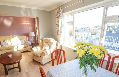 Amenities: Oil central heating with electric fire. Electric oven and hob, fridge, washing machine, tumble dryer, dishwasher. TV with Sky, DVD Player, WiFi, selection of books and games. Fuel and power inc. in rent. Bed linen and towels inc. in rent. Parking. Front terrace with patio and furniture. Enclosed, sloped back garden with lawn, decking, gravelled area and furniture. Sorry, no pets and no smoking. Shop 0.3 miles, pub 0.2 miles, beach 0.4 miles. Note: This property rests above the owner's home, please consider this when booking. Note: There are external stairs leading up to the property, please take care. Note: There are stone steps in the back garden, along with a sloping lawn, please take and supervise children outside at all times