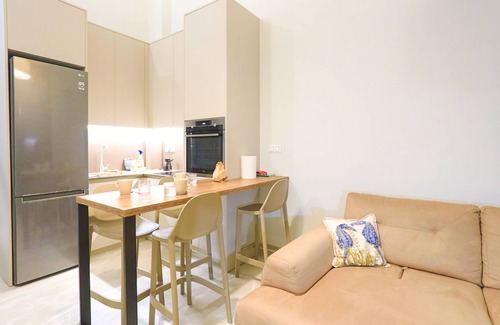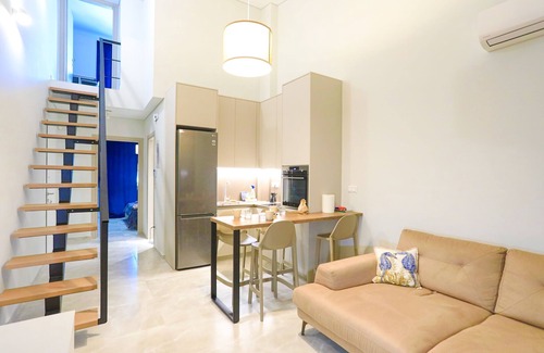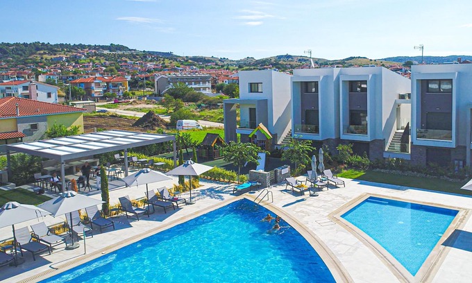 Lavinia flat is a modern, fully air-conditioned maisonette-type apartment in OLEA VALLEY COMPLEX that settles on the first level, with a private front balcony, in the cosmopolitan village of Nikiti - Halkidiki.