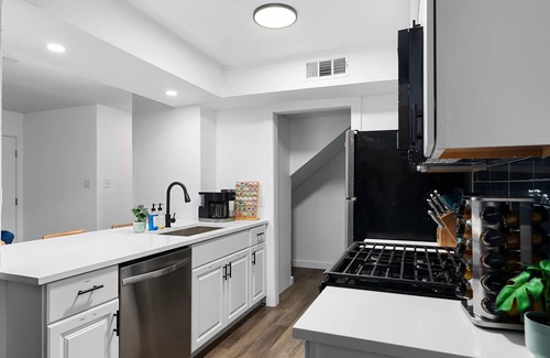 You’ll be just five minutes from the many great restaurants and bars in South Lamar, but when you’re craving a home-cooked meal, the full kitchens provide all the basic necessities for everything from basic snacks to gourmet meals. Enjoy stainless steel appliances, cozy dining areas, and a fully stocked coffee and tea bar.